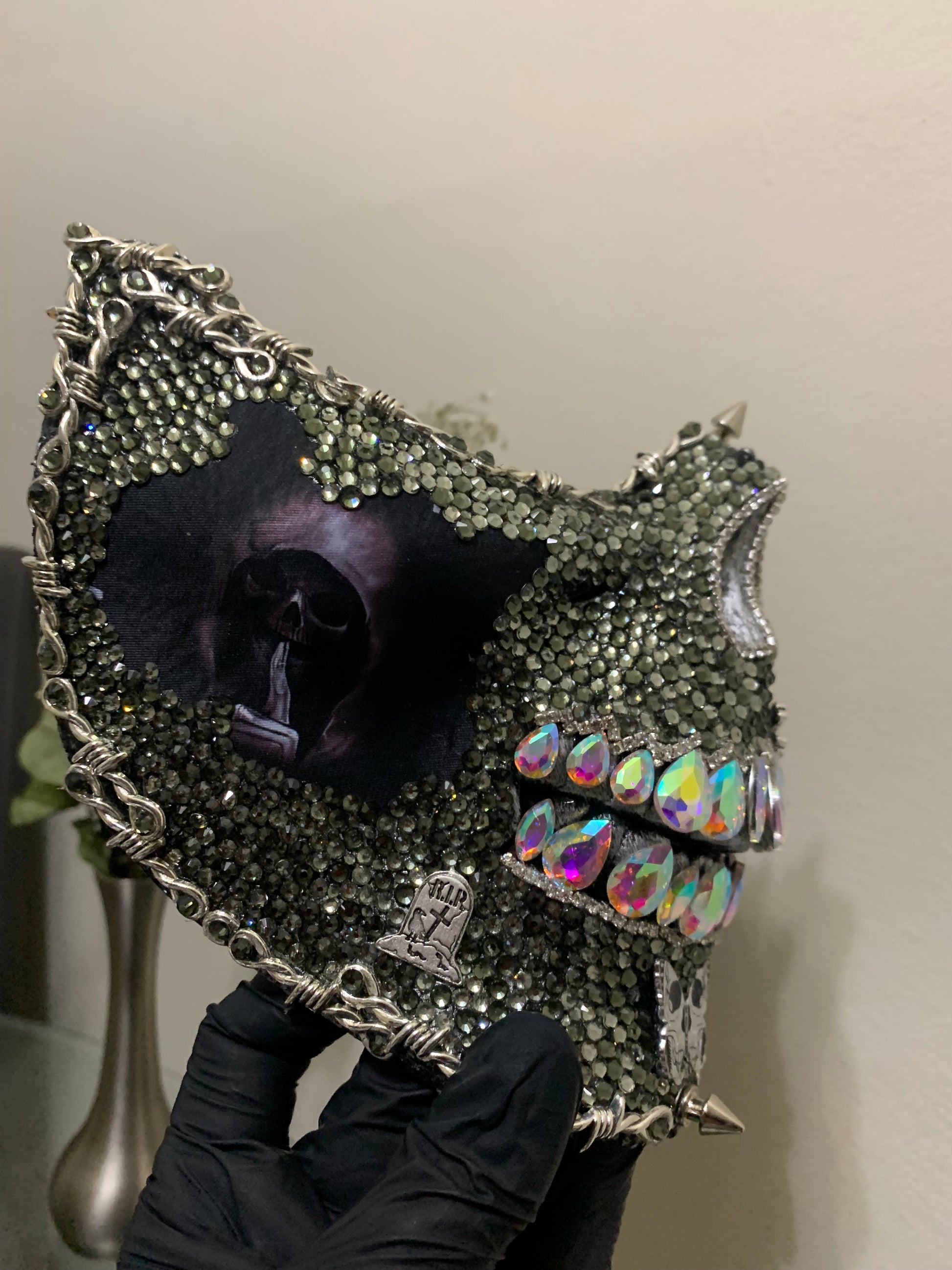 Dazzle and intimidate with this irresistible KISS of Death Masks, crystal-encrusted mask adorned with spikes and skulls, holographic fangs, and intricate steampunk gears. A true statement piece for festivals, masquerades, and high-fashion cosplay. Grab this today!